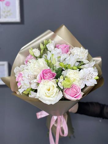 Трепетный, воздушный, словно глоток нежности, этот букет словно поле цветов, он создает природный пейзаж от которого не возможно отвести взгляд. Цветы собранные в этом букете словно символ невинности, первой любви и самых искренних чувств. Подарите их дорогому для вас человеку, которого вы считаете самым главным в вашей жизни.